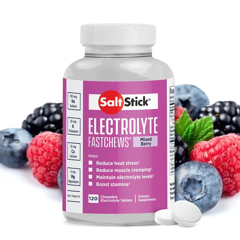 - CHEWABLE ELECTROLYTE TABLETS: SaltStick FastChews are chewable bite-sized electrolyte tablets packed with sodium, potassium, calcium, and magnesium. These electrolyte supplements were designed to replace the essential electrolytes lost through sweat to keep the body hydrated during endurance workouts, reduce heat stress, and to provide leg cramps relief on those long workouts.