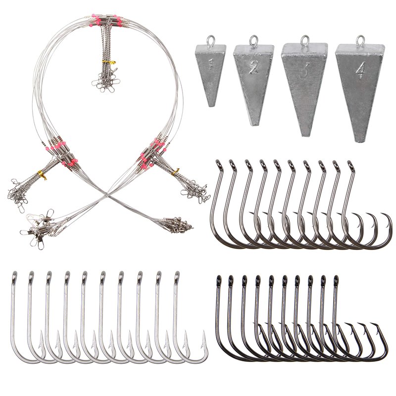 - KIT INCLUDED: Surf Fishing Rig contains 12pcs fishing wire leader rigs,4pcs pyramid sinkers, 30pcs fishing hooks.