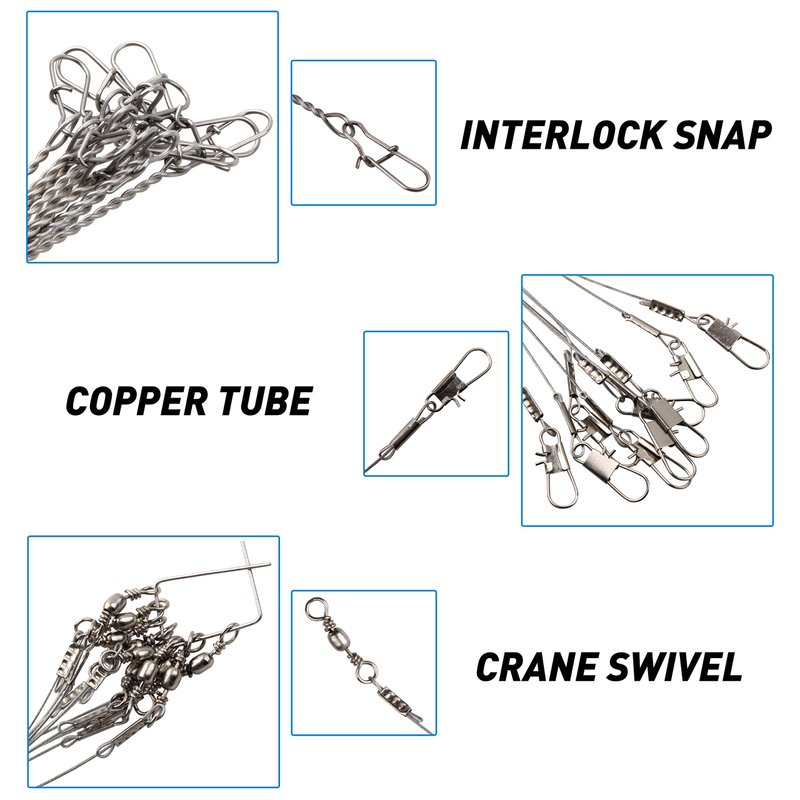 Fishing wire leader is made of high-strength stainless steel and abrasion resistant, into the sea is not easy to rust.