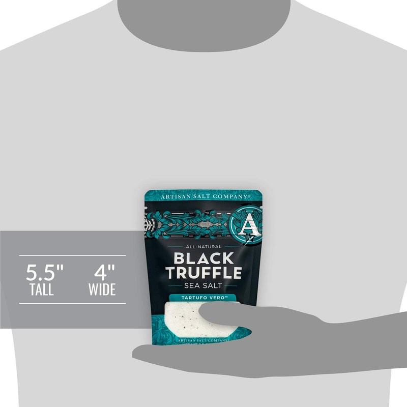 - ZIP-TOP POUCH: SaltWorks zip-top pouch seals in freshness and offers just the right amount of black truffle sea salt to use in recipes or to fill our shaker jar