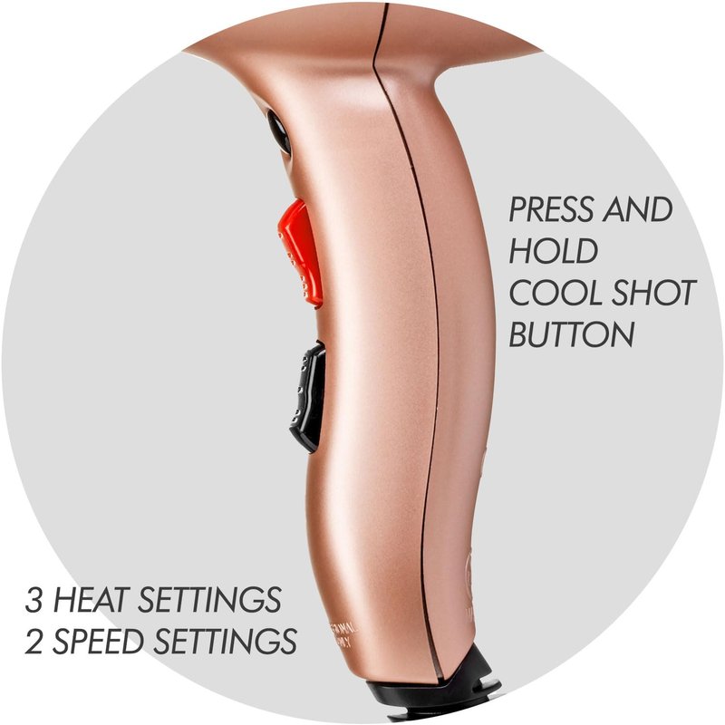 Sam Villa Lightweight & Quiet Ionic Professional Hair Dryer With Variable Speed & Temperature, Rose Gold
