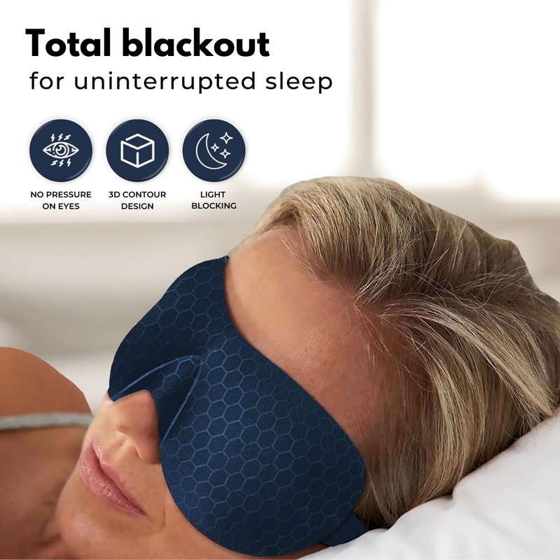 - 3D Contoured Design: Our sleep masks for women are designed with a 1.5 cm depth, ensuring no pressure on your eyes. You can blink freely without smudging your eye makeup. It's the perfect sleep protector for eyelash extensions, promoting deeper REM sleep. The sleep eye mask is superb at blocking light, and its gentle contour allows you to sleep in darkness anytime. With deeper and wider eye pockets, you get more space for your eyes compared to regular flat sleep masks.