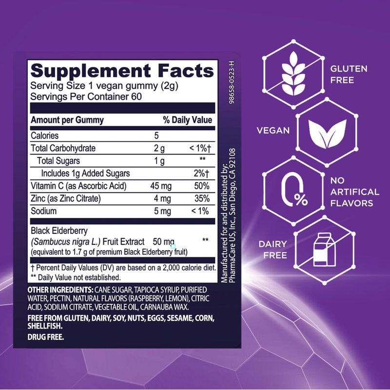 - IMMUNE SYSTEM SUPPORT - Our Black Elderberry with Zinc and Vitamin C gummies may help support your immune system so you can take on the day without missing a beat