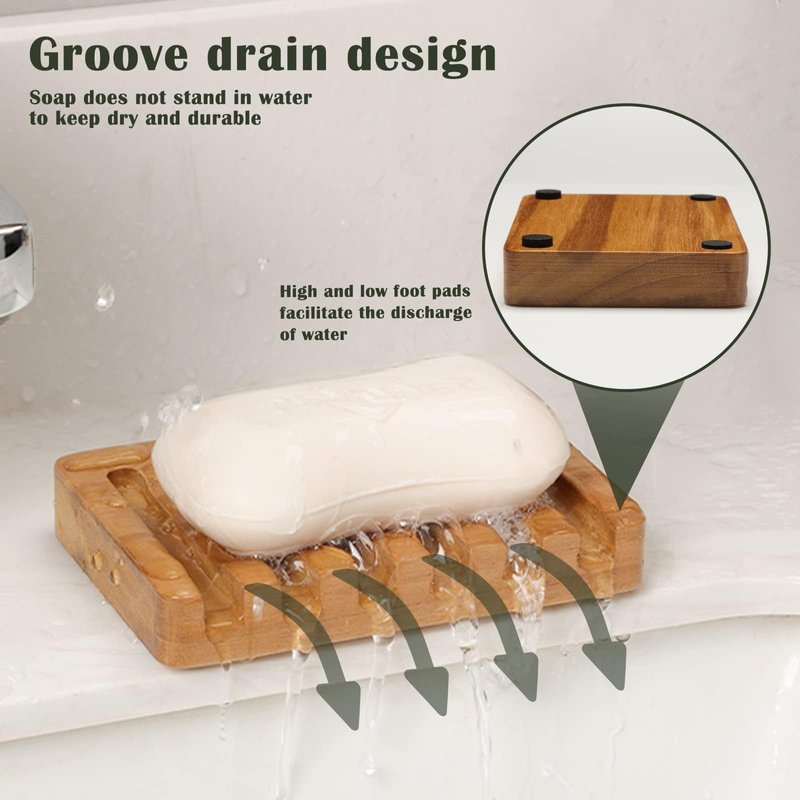 - Simple Design, Great Gift Set:With a clean and minimalist wood finish, this 2-piece soap dish set blends easily into modern, rustic, or farmhouse-style home decor. Sized at 4.72" x 3.15" x 0.75", it’s compact and makes a practical gift idea