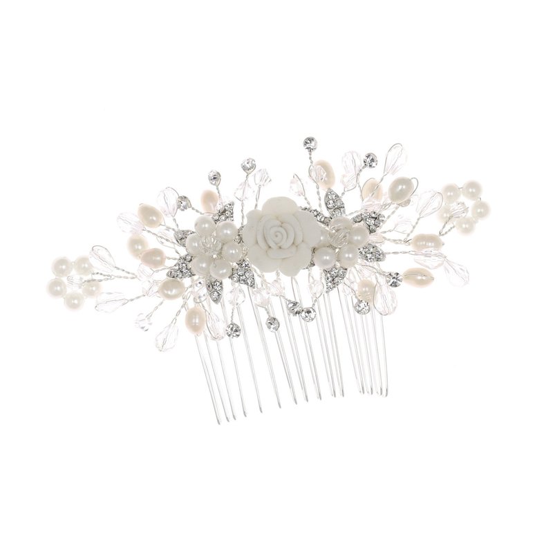 SAMKY Handmade Crystal Freshwater Pearl Flower Wedding Tiara Hair Comb T1084