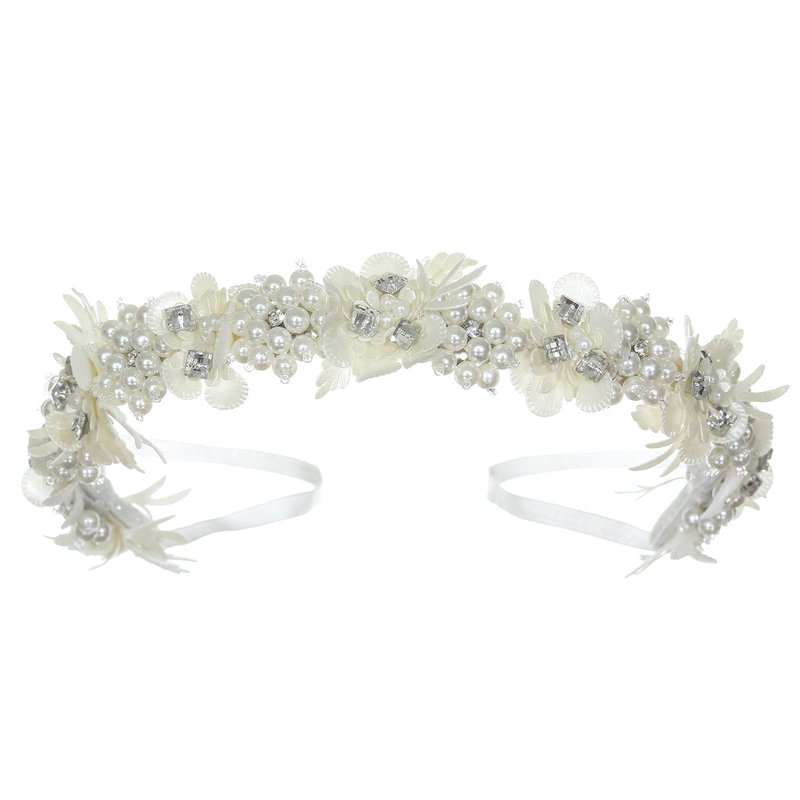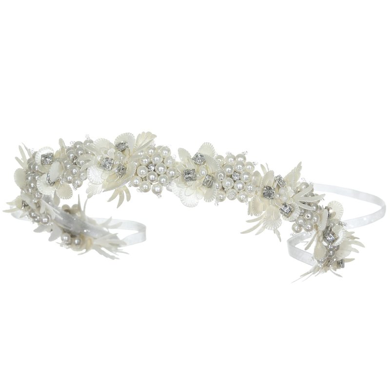 SAMKY Pearl Rhinestone Crystal Satin Communion Flower Wreath Headband T1303