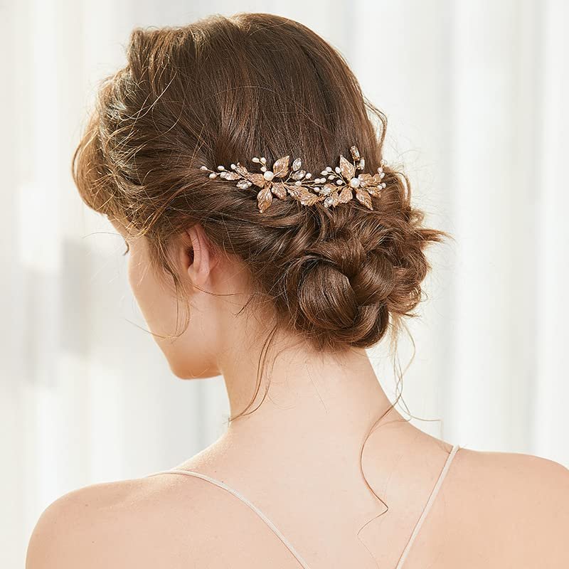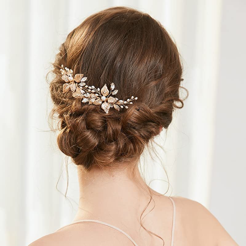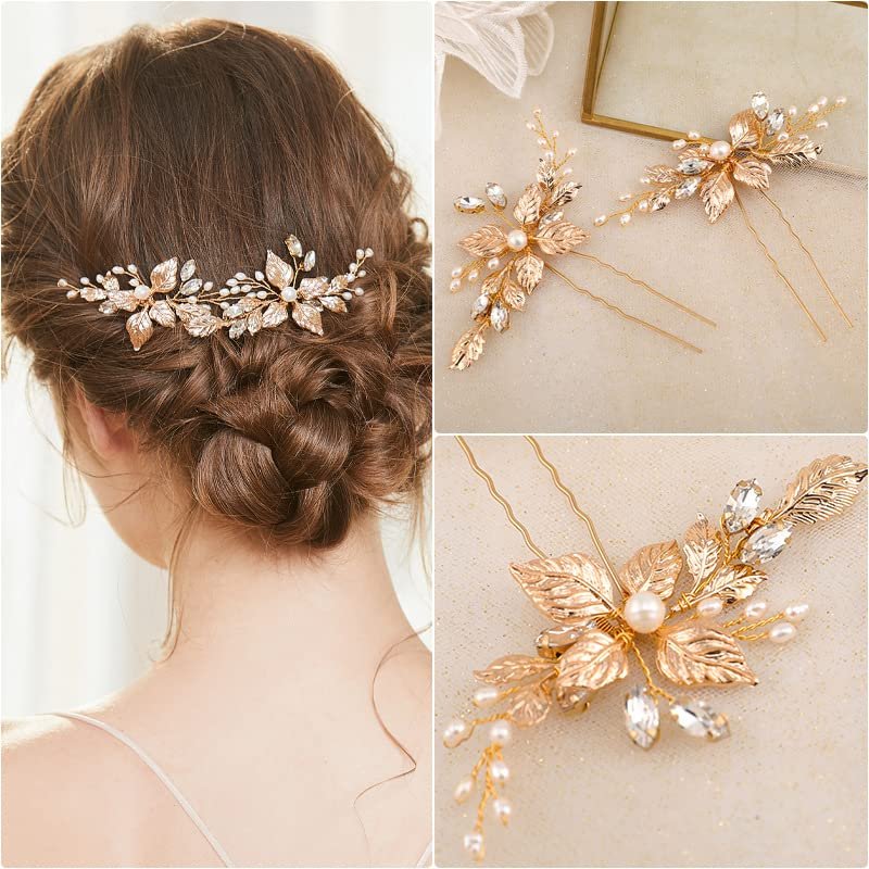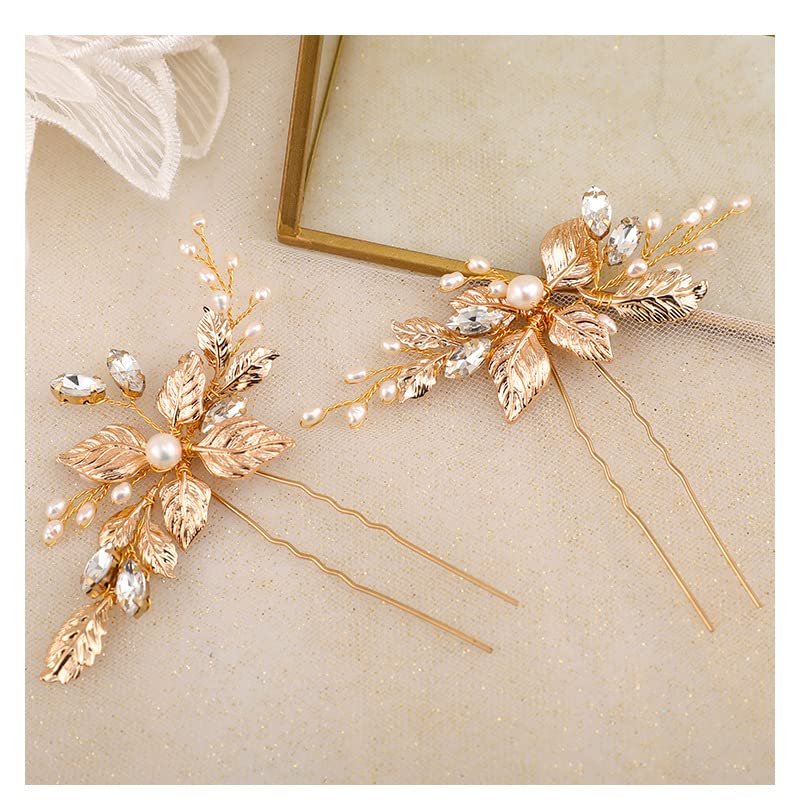 Samlbale Gold Hair Accessories Bride Wedding Hair Pins, Bridal Head Piece Gold Hair Pins Hair Accessories for Women girls Pack of 2