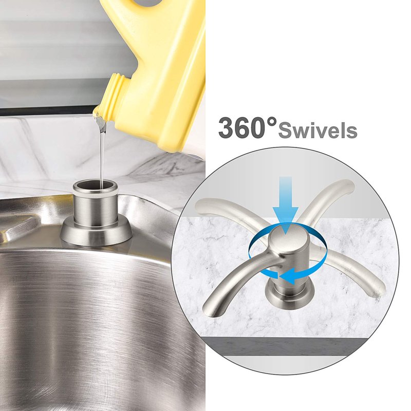- **Versatile Design**: Our soap dispenser is designed to work with a variety of liquid products, such as hand soap, lotion, and detergent. The 360-degree swivel feature allows for use from any angle, maximizing counter space efficiency.