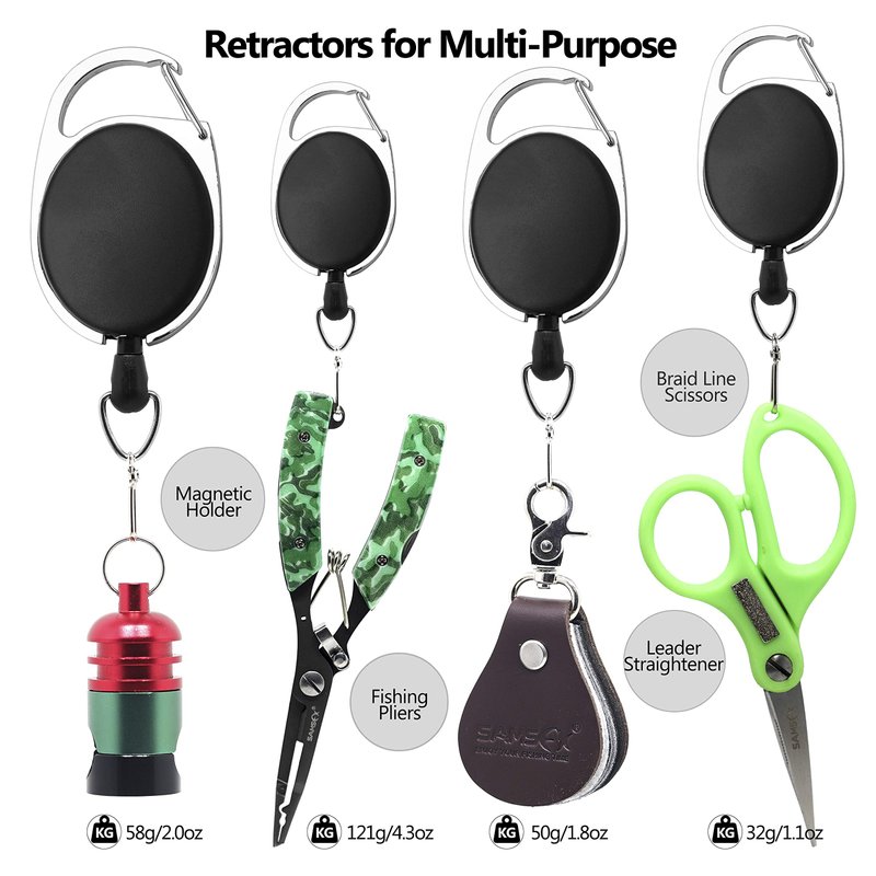 - SHEATH/LANYARD/ACCESSORIES INCLUDED:Includes a custom molded sheath with belt clip and steel wire coiled lanyard to keep this handy tool within easy reach and security. Come with fishing knot tying tool and zinger retractors kit, for everyone to tie their own tackles with a professional knot