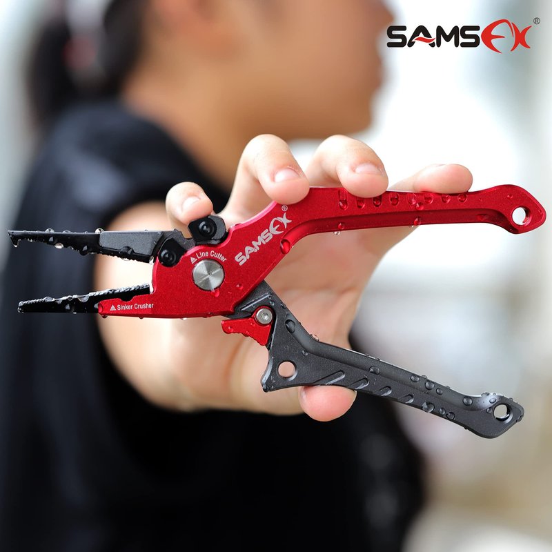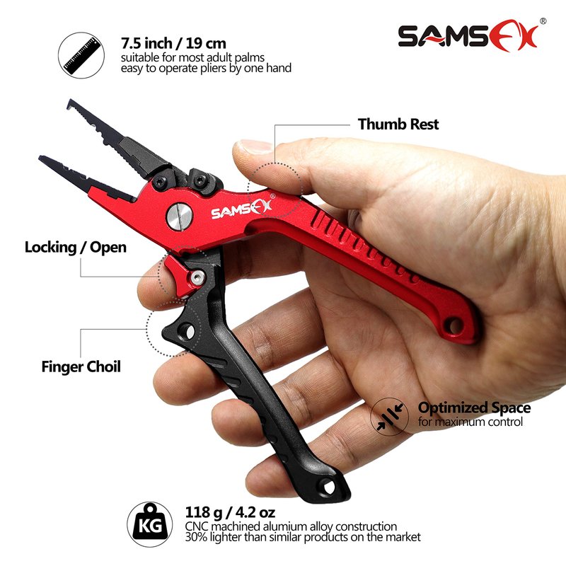 - SAFETY LOCK: Unlike the spring loaded pliers, SAMSFX pliers designed with unique lock switch keeps the pliers open and close freely with just one hand. Especially when the fish tongs are not used for a long time, locking the pliers can avoid accidental injury