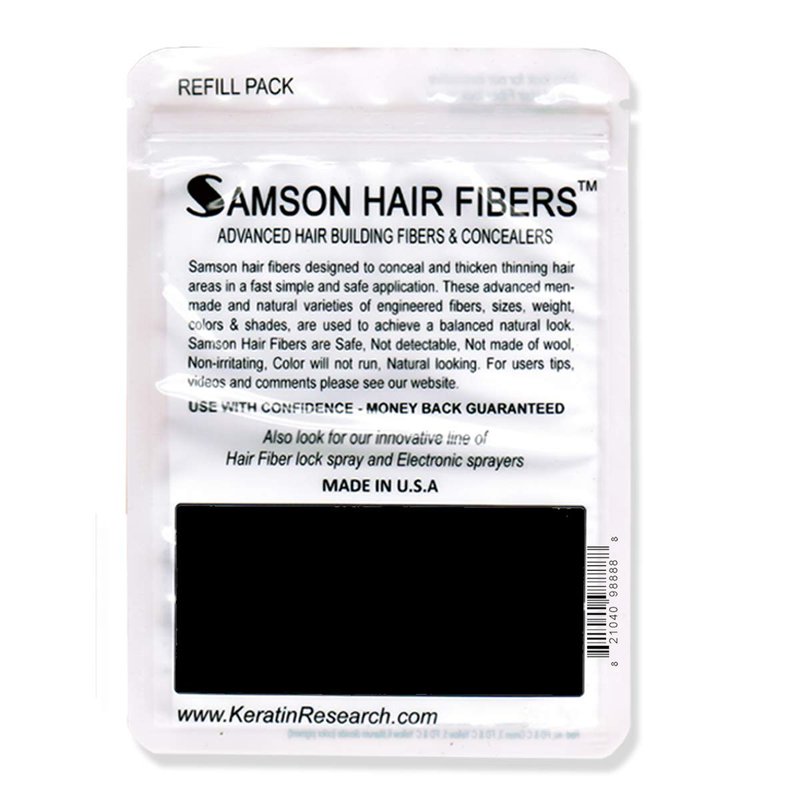 - 👍 INSTANTLY GET THICKER, FULLER LOOKING HAIR: Just shake SAMSON FIBERS directly onto thinning areas and watch the advanced fibers bond seamlessly to your existing hair, creating a completely natural looking thick and full appearance. Upon contact, the fibers are immediately attracted to the hair shafts, making thin hair seem many times fuller and darker due to thousands of tiny fibers clinging to the hair.