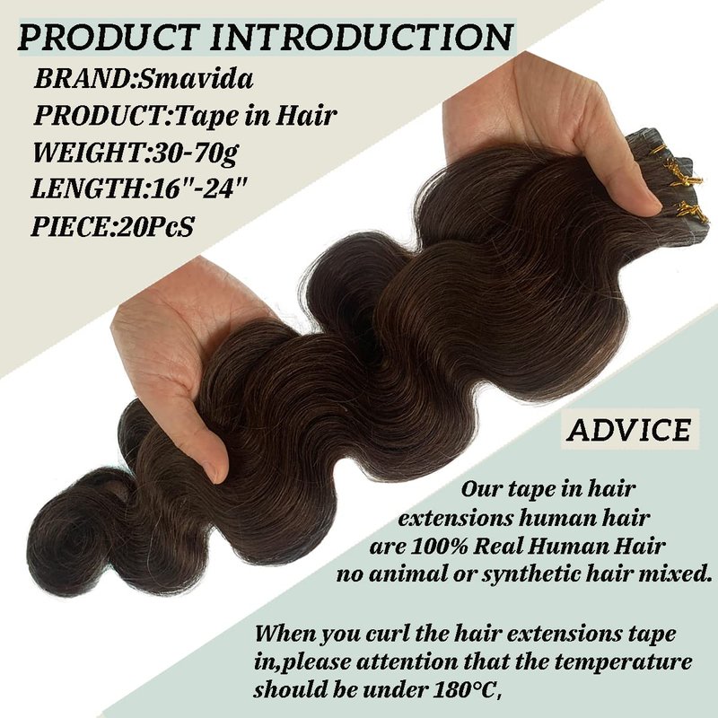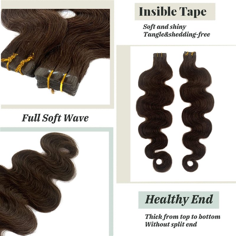 Product information:Body Wave Tape In Remy Human Hair Extensions
