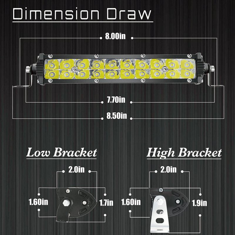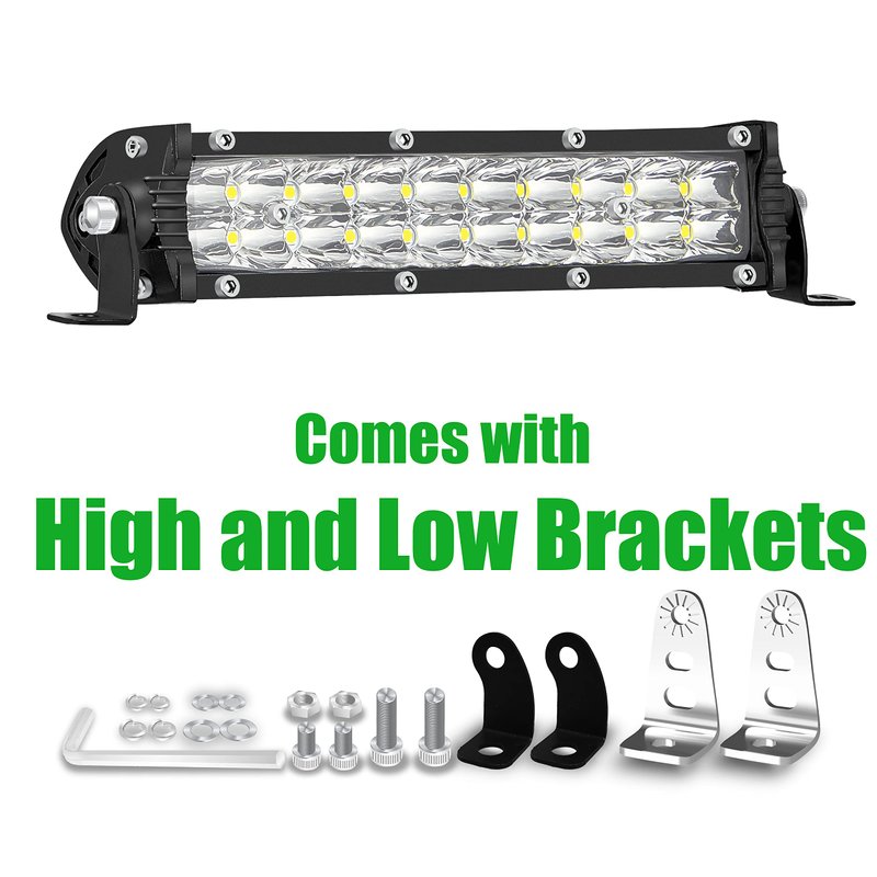- 【4 Brackets for More Application】Each light bar comes with 2 high brackets and 2 spare low brackets. The high brackets are angle adjustable and the low brackets are for small spaces like inside the front grille