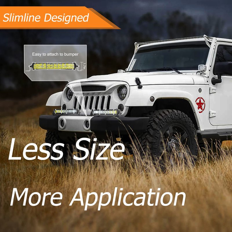 - 【Rigid & Waterproof】Being made of 6 inch aluminium housing, 98% transparent PC lens, High power convex LED chips, and the latest sealing tech, the slimline LED bar is born to be IP67 waterproof and 50,000 hrs working time