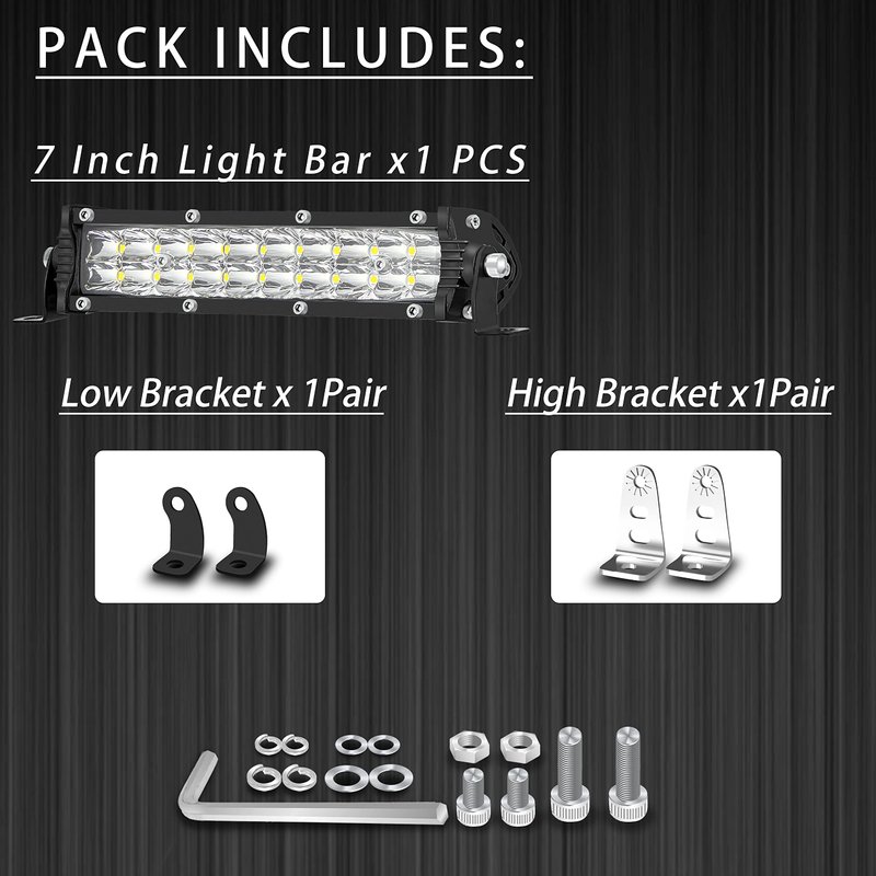 - 【Slim LED Light Bar】7-Inch slim &low-profile design allows for easy mounting in small spaces on automotive such as front grills, roof racks, and bumpers