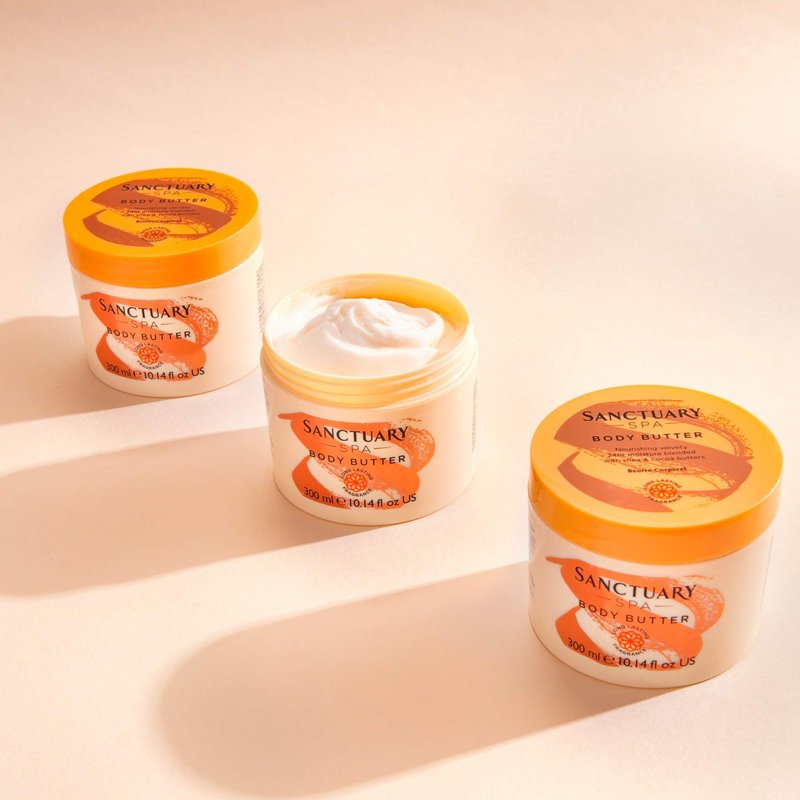 - This luxurious blend of shea & cocoa butter, sweet almond & macadamia nut oil melts into skin to leave it feeling instantly nourished, soft & smooth to touch.