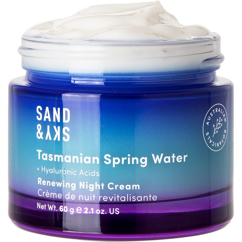 Sand & Sky Tasmanian Spring Water Renewing Night Cream - Deep Hydration, Moisture Retention, Skin Renewal | 3-type Hyaluronic Acid, Glycoproteins, and Antioxidants.