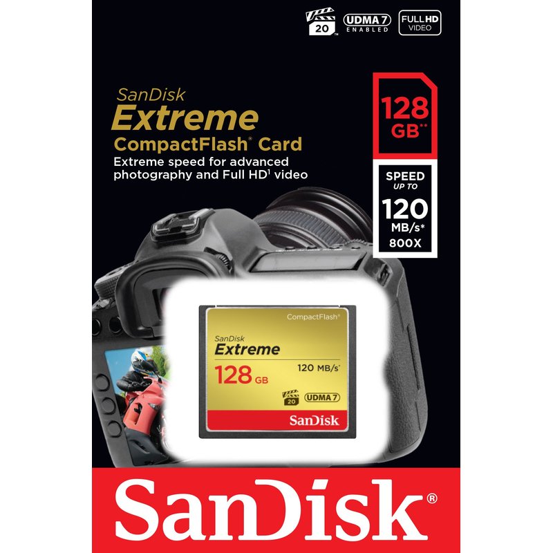 SanDisk 128GB Extreme CompactFlash Memory Card UDMA 7 Speed Up To 120MB/s - SDCFXSB-128G-G46