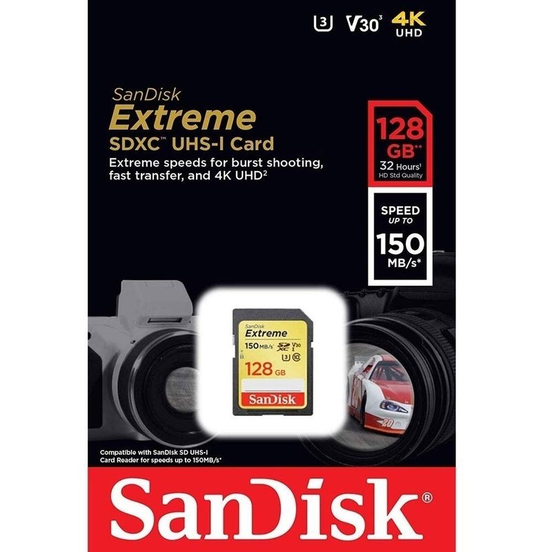 SanDisk 128GB Extreme SDXC UHS-I Memory Card - 150MB/s, C10, U3, V30, 4K UHD, SD Card - SDSDXV5-128G-GNCIN