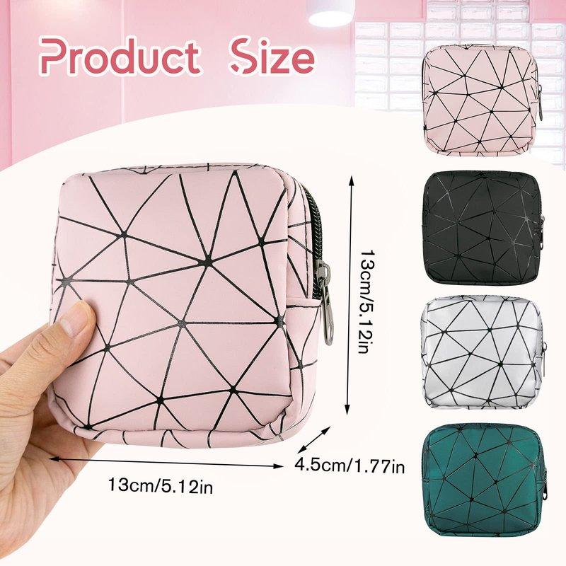- 💕【Cute 4-Piece Set & Privacy Protection】 We specially designed 4 cute sanitary napkin storage bags for women, which are black, silver, green and pink, designed in rhomboid, giving you different feelings, and can effectively help you avoid embarrassment in special periods