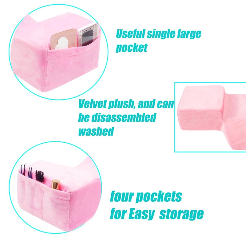 - Convenient For Eyelash Extension Pillow: Two big pockets on both sides of the lash pillow that very helpful for putting all the eyelash tools, making it easy to keep everything organized And there is a sloping design in front of the pillow, which is different from common eyelash pillows.