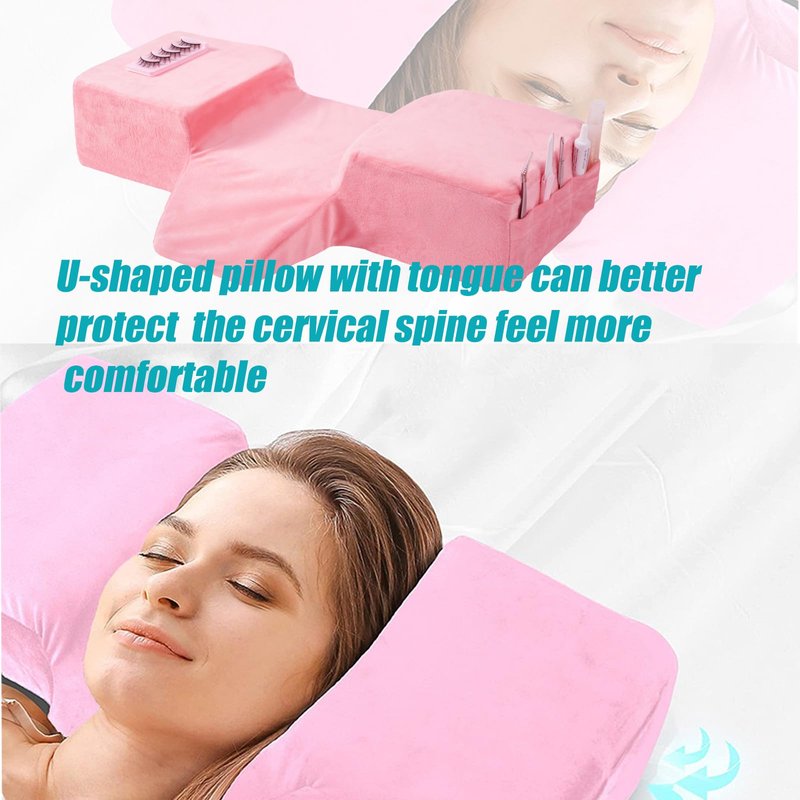 - Optimal Support For The Neck:The eyelash pillow adopts ergonomic curve design to to help correct spinal posture of the neck. The contoured head rest keeps head and neck level.