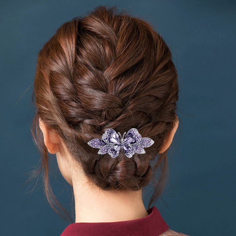 Sankuwen Crystal Rhinestones Hair Barrette French Hair for Women Small Hairpin for Mom Butterfly Hair Clips (Purple)