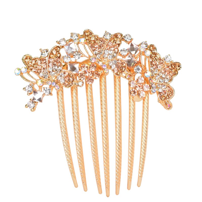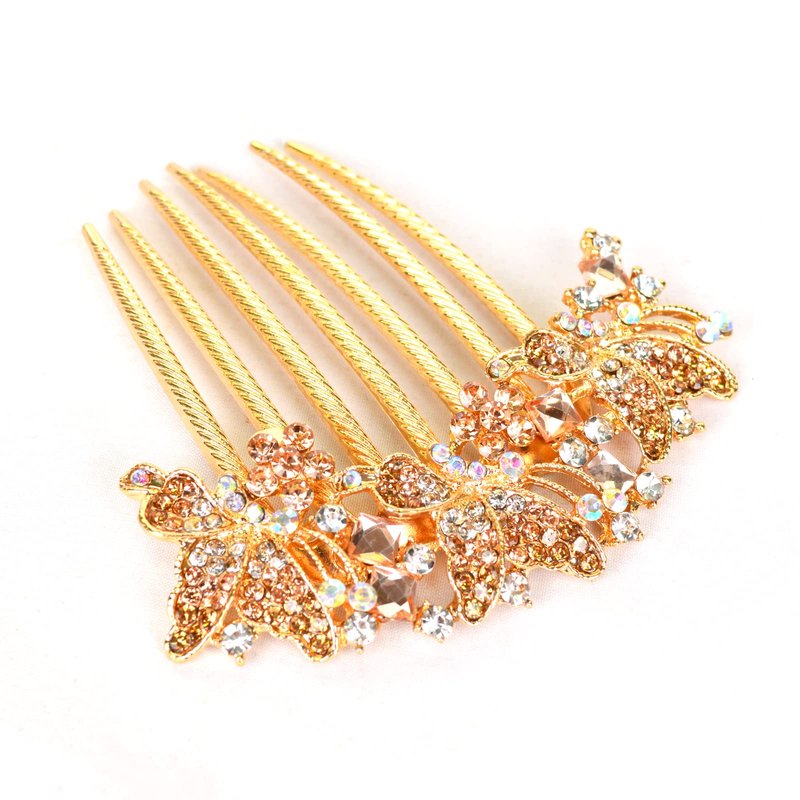 Sankuwen Women Rhinestone Inlaid Butterfly Hair Comb Hairpin Barrette Accessory (Style-B,Champagne)