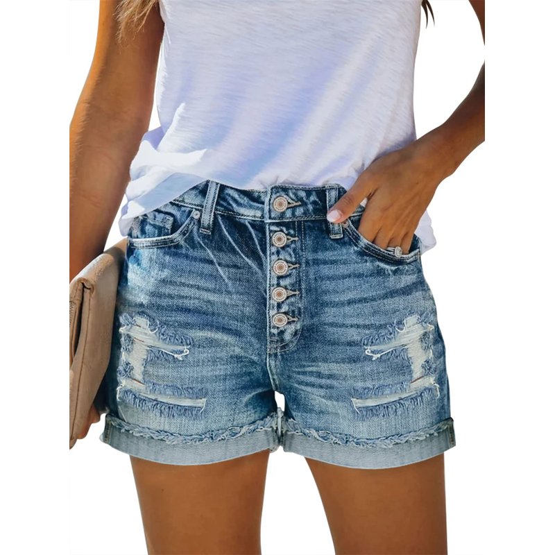 - Perfect Match:Folded hem jean shorts for women, distressed denim shorts for women summer casual. Pair with Crop Top, Tank, Casual T-shirts, Peplum Tops, Vest, Blouses, or any tops. Looks cute with a slouchy tee and your favorite high heels or sports shoes!