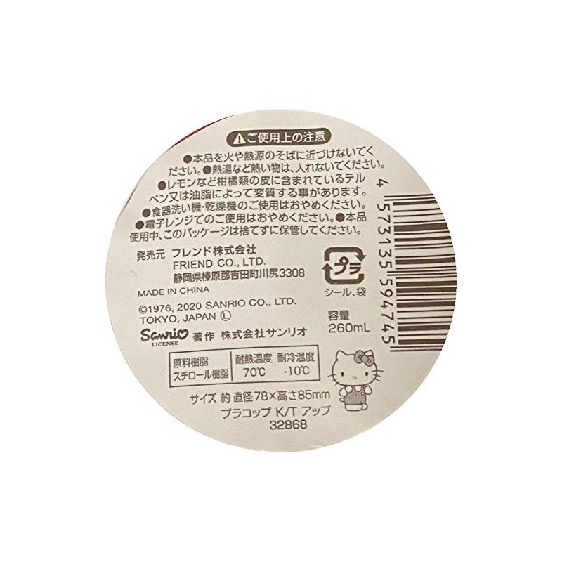 Sanrio Hello Kitty Plastic Cups 7.8 × 8.5 × 7.8 cm 260ml Dinnerware Drinkware Saucers Kitchen (Red)