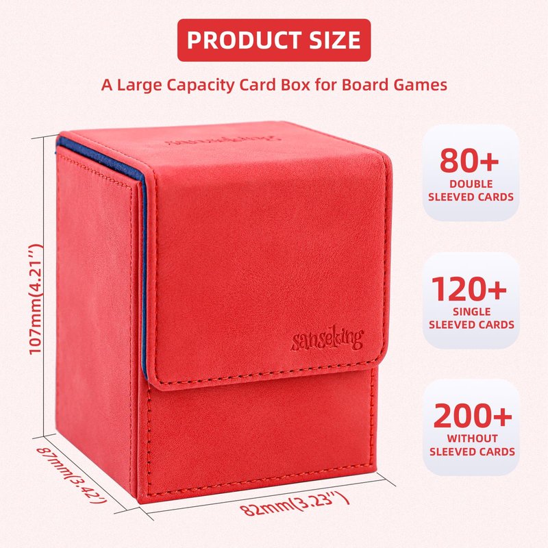 - HIGH CAPACITY: The Sanseking 100 card deck box measures 4.2 x 3.2 x 3.4 inches. This card box for MTG holds up to 100 standard-sized gaming cards with a single sleeve or 200 unsleeved cards. It is not compatible with top loaders.