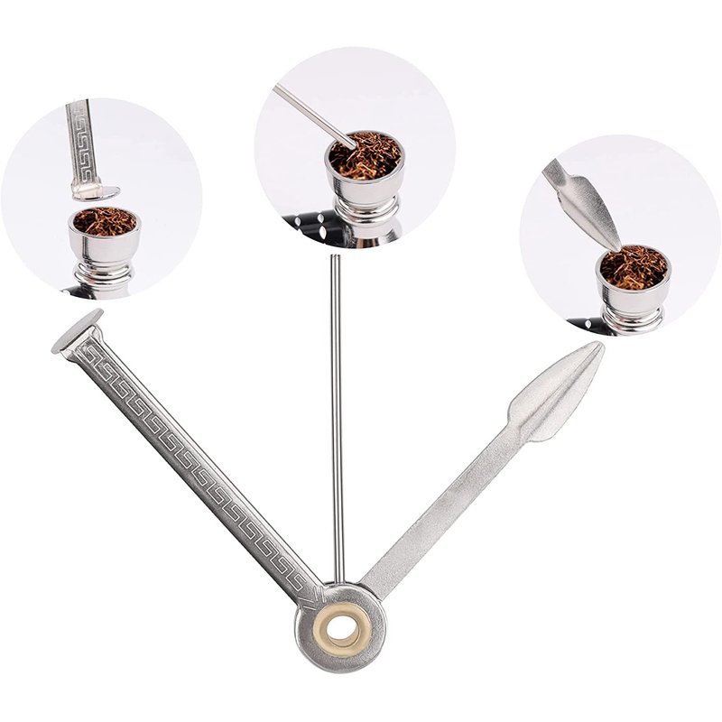 Durable and beautiful: the pipe tamper tool is made of quality stainless steel, 3 in 1 design, lightweight and easy to carry; The front is beautifully engraved, with the silver color, together giving the pipe tamper tool an elegant and classic look