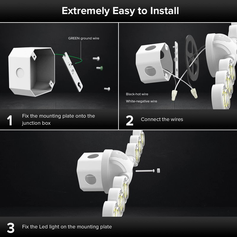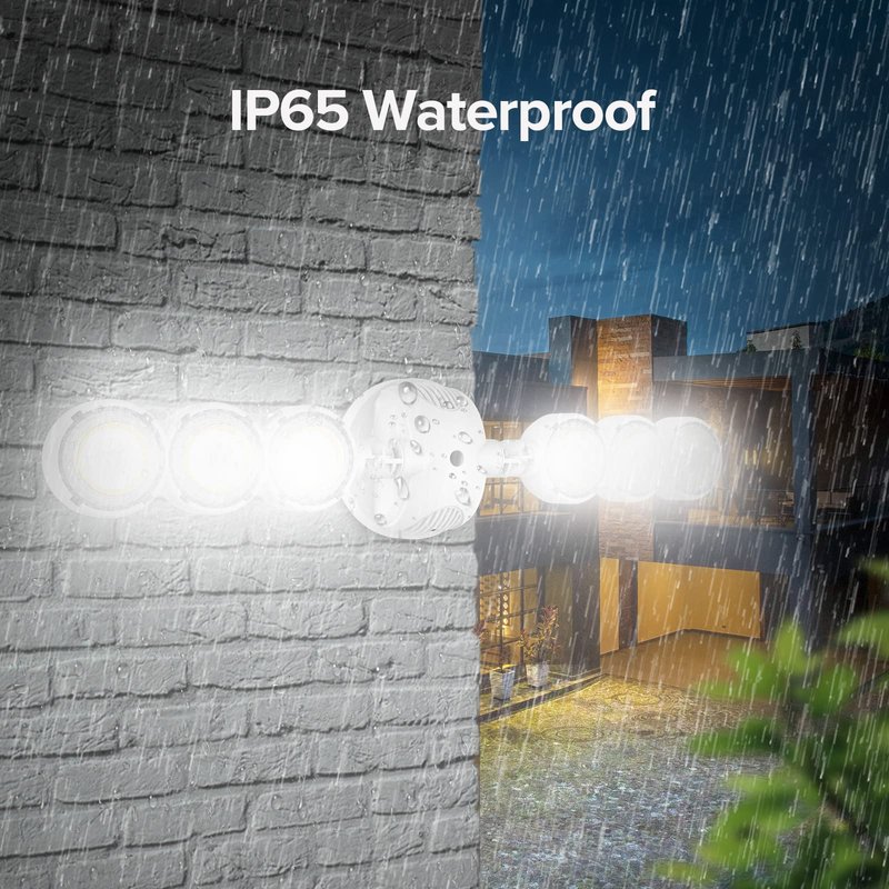 - WIDE 320° LIGHT ANGLE& EASY INSTALLATION: The light angle can have a maximum illumination of 320 degrees .You can adjust the 2 security light heads and motion sensor head to a different angle as your requirement. This outdoor motion security light can be installed for wall mounting or soffit/eave mounting by following a few wiring steps.