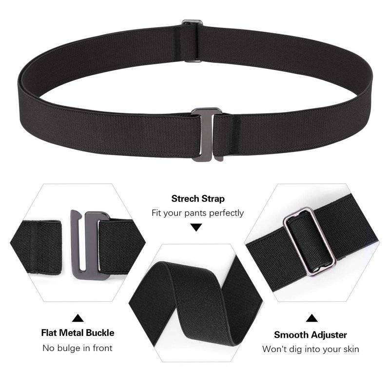 - [ Versatile No Bulge Belt] Trade in your closet full of belts for one that can do it all. Pair with your favorite shirt & jeans for a quick lunch or under your suit top for a trip to the office. Going outdoors? That's ok because the elastic belt's flexible design is ideal for outdoor activities like running,camping, hiking or climbing.
