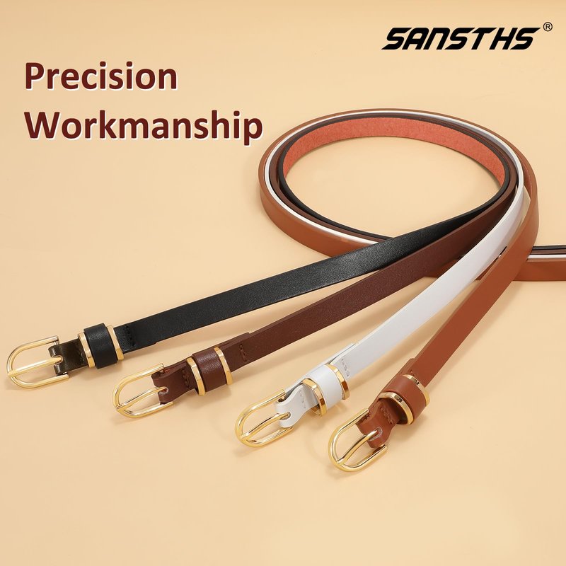 Features Of Women thin Belt. ???Best Summer Skinny Belt??Gold alloy metal buckle with single prong , wonderful colors and simple tail design .What a over perfect summer belt !Sure the quality of our waist belt will be good for what you pay for. ???Soft & Light??1/2 inch wide microfiber leather thin belt strap, soft leather material allow this thin belt be lighter and more comfortable.Really a gorgeous belts with soft texture .???True to Size??Regular and plus sizes from 20-49 inch waist , 6 sizes are available. This skinny belt could fit most of people's figure perfectly and making your graceful waist look more attractive and outstanding. ???A Belt for Everything??Set of 4,pay once get FOUR!What a bargain! With so many decent solid colors there are multiply choice to matching your evey daily outfit. To be specific, set of staple thin belts are a great finishing touch for your dress, t shirt, jeans, sweater or coats.???Best Gift Choice??This simple stylish skinny jeans belt is a quality gift for your mom, sisters, spouse, girlfriend.They come to you with cute and elegant package.Literary, it absolutely a great gift idea for Christmas holiday, birthday, Valentine's Day,etc.