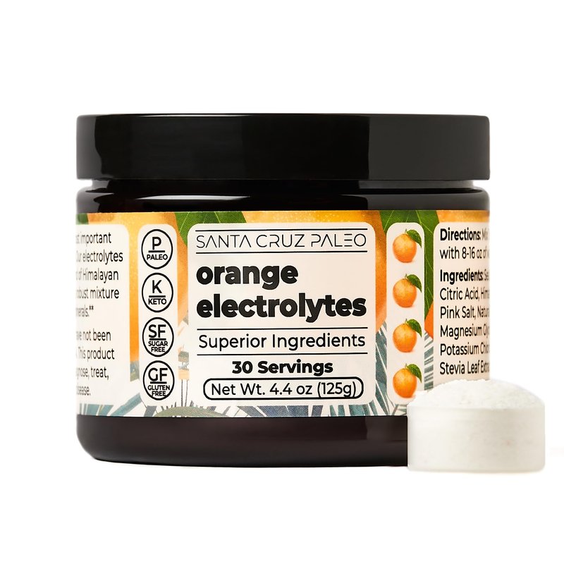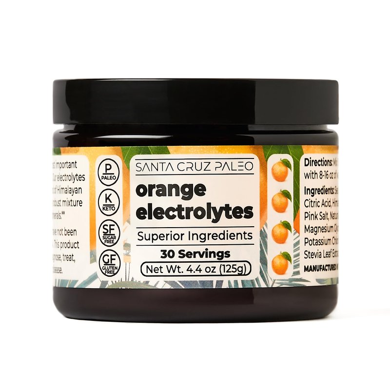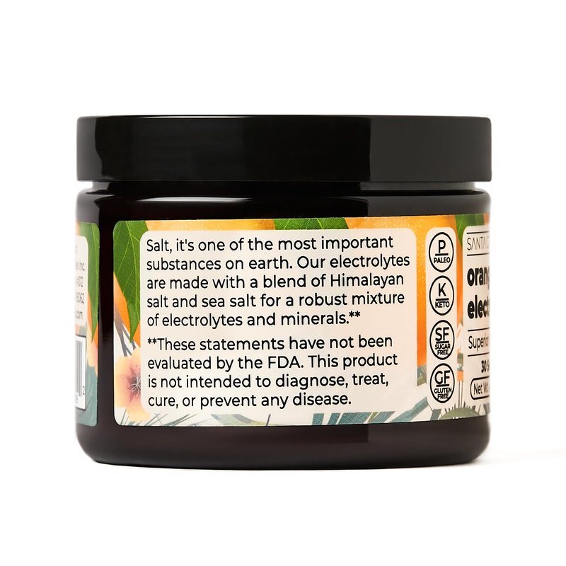 Santa Cruz Paleo Real Salt Electrolytes Powder, Orange, Hydration Drink Mix Made with Himalayan Pink Salt, Sea Salt, Magnesium Glycinate, Gluten Free, Keto, Sugar Free, Paleo, 30 Servings, 1 Jar