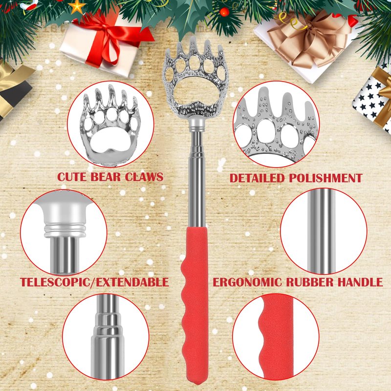 - 🎅🏻Introducing the retractable bear claws back scratchers designed by Santa Claus! Our Santapick back scratcher extends to 22 inches and retracts to 8 inches for convenient storage. Say goodbye to hard-to-reach itchy spots and hello to stress relief!