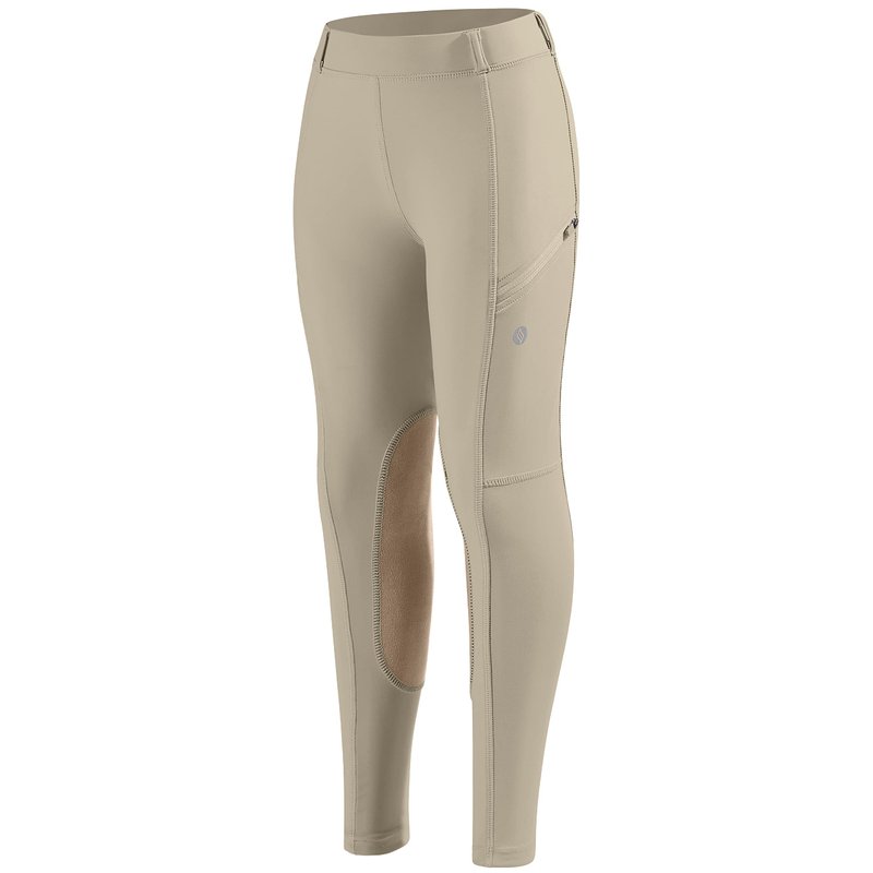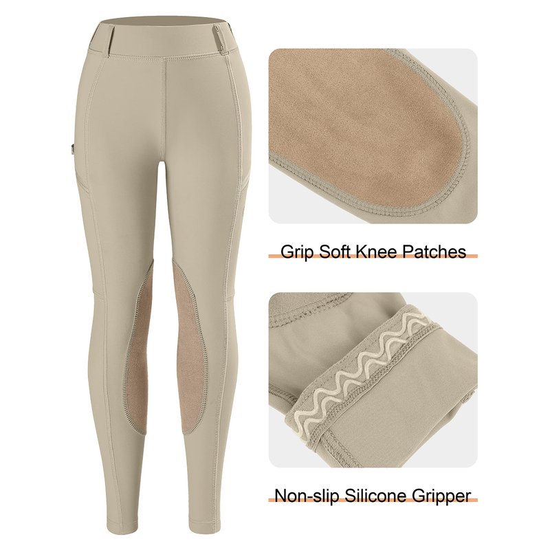 SANTINY Girls Horse Riding Pants with Zipper Pockets Kids Stretchy Equestrian Breeches Knee-Patch Youth Schooling Tights (Khaki_M)