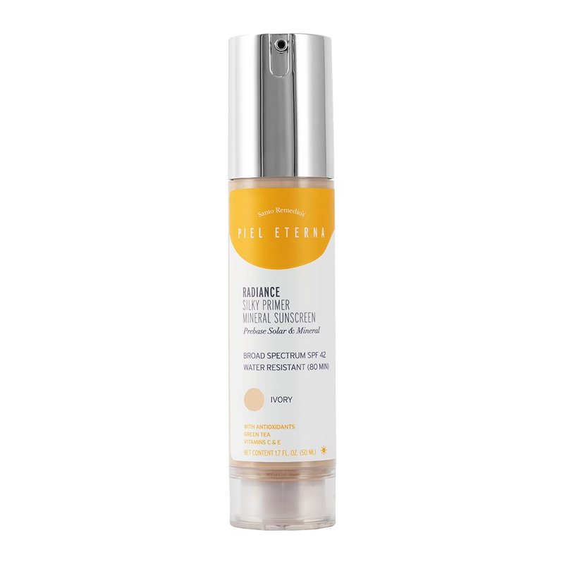 Santo Remedio, Piel Eterna, RADIANCE Silky Primer Mineral Sunscreen with SPF 42 (1.7 Fl Oz), Tinted Broad Spectrum Protection with Antioxidants and Vitamin C, Ivory Tone