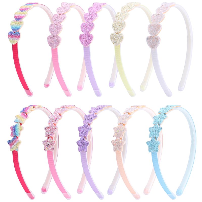 This is a glitter headband specially designed for girls and women. Features: 1.Fashion classic glitter headband 2.It has a wide range of uses, girls hairbands can be used as decorations or as auxiliary tools for hair 3.Girls head bands are suitable for any scene Product details: Material: Made of plastic glitter Quantity: 10 pieces