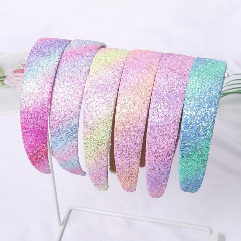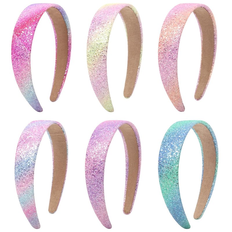 This is a Glitter Headband specially designed for girls and women. Features: 1.Fashion classic glitter headband 2.It has a wide range of uses, girls hairbands can be used as decorations or as auxiliary tools for hair Product details: Material: Made of plastic glitter Quantity: 6 pieces