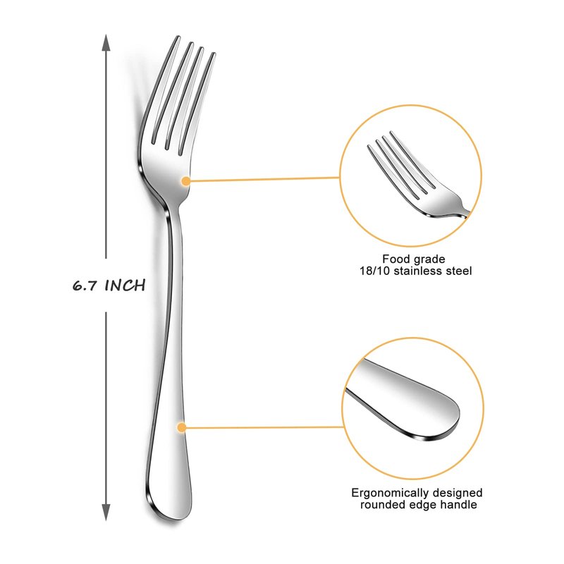 - [Ergonomic Design]- Salad forks have an ergonomically designed rounded edge handle for a comfortable grip.The sturdy construction makes the fork less bendable, adding more elegance and class to your table and making your daily dining experience more satisfying.