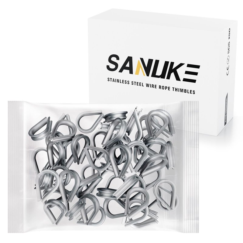 Sanuke 60pcs M2 Stainless Steel Wire Rope Thimbles for 1/16'' - 3/32'' Diameter Rope Thimble Rigging
