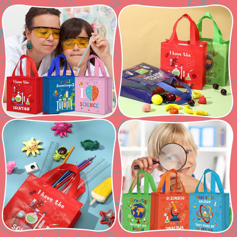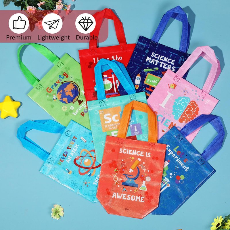 - Science Theme: the non woven gift bags are designed with related chemical, biological, physical and geographical elements, paired with bright colors, exquisite and eye catching, suitable for any science theme parties