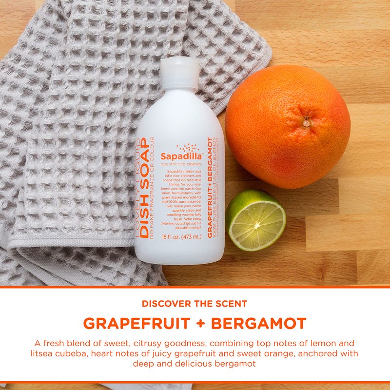 Sapadilla Liquid Dish Soap - Grapefruit + Bergamot - Made with 100% Pure Essential Oil Blends, Tough on Grease, Aromatic & Fragrant Dishwashing Liquid, Plant Based, Biodegradable, 16 Ounce (Pack of 1)