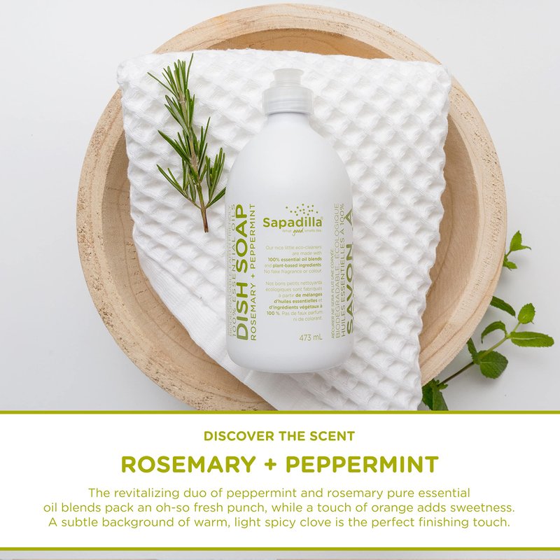 Sapadilla Rosemary + Peppermint Biodegradable Liquid Dish Soap, 16 Ounce