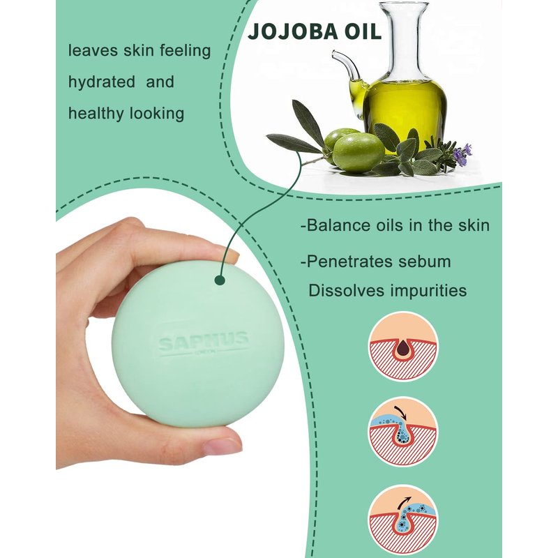 SAPHUS Face Wash Bar, Facial Cleansing Bars Balancing Face Soap Cleanser with Amino Acids & Jojoba Oil for Gentle Exfoliation for Oily Skin, Soap Free, Sulfate Free, Zero Waste