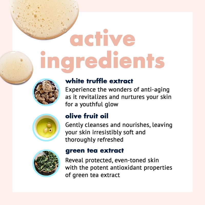 1) White Truffle Extract: Harnessing the power of anti-inflammatory and anti-aging properties, white truffle extract contains "Superoxide Dismutase," a potent enzyme that repairs damaged skin and prevents signs of aging.