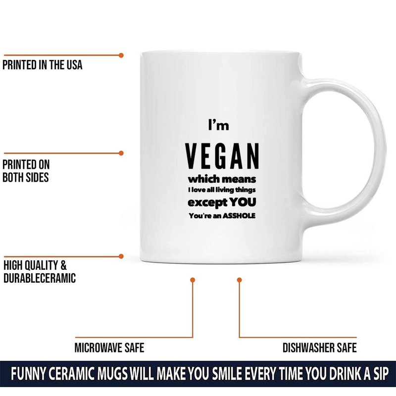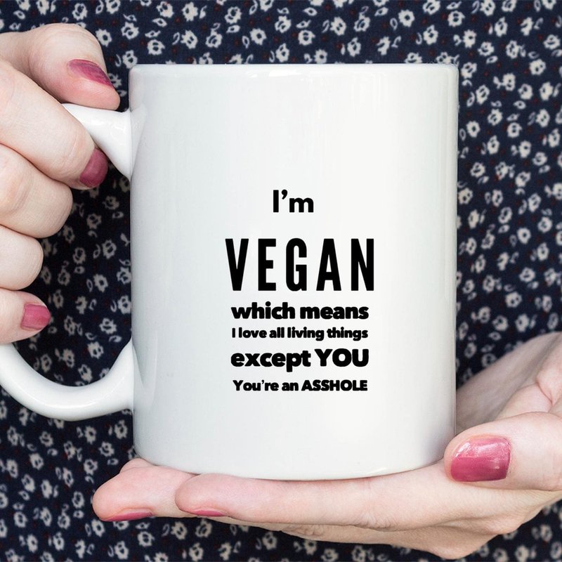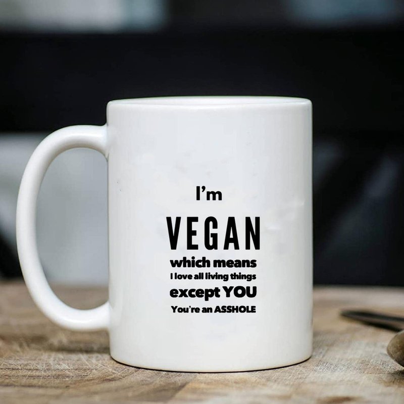 Sarcastic Vegan Mug I'm Vegan Which Means I Love All Living Things 11 oz Coffee Mug - Funny Inspirational and Sarcasm