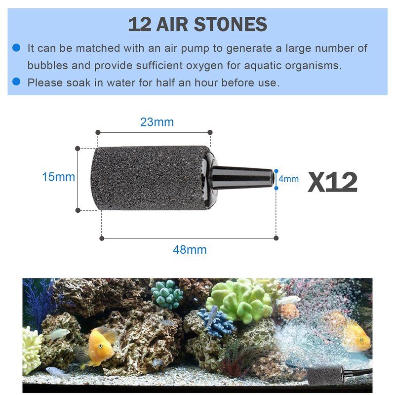 - 5.Aquarium Air stones:The air stones for fish tank can be matched with an aquarium air pump to generate a large number of bubbles and provide sufficient oxygen for aquatic organisms. Please soak the Air stones for aquarium in water for half an hour before use
